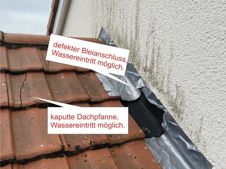 "Hinweis und Kenntlichmachung der schadhaften Stellen am Dach, die du von unten nicht siehst."